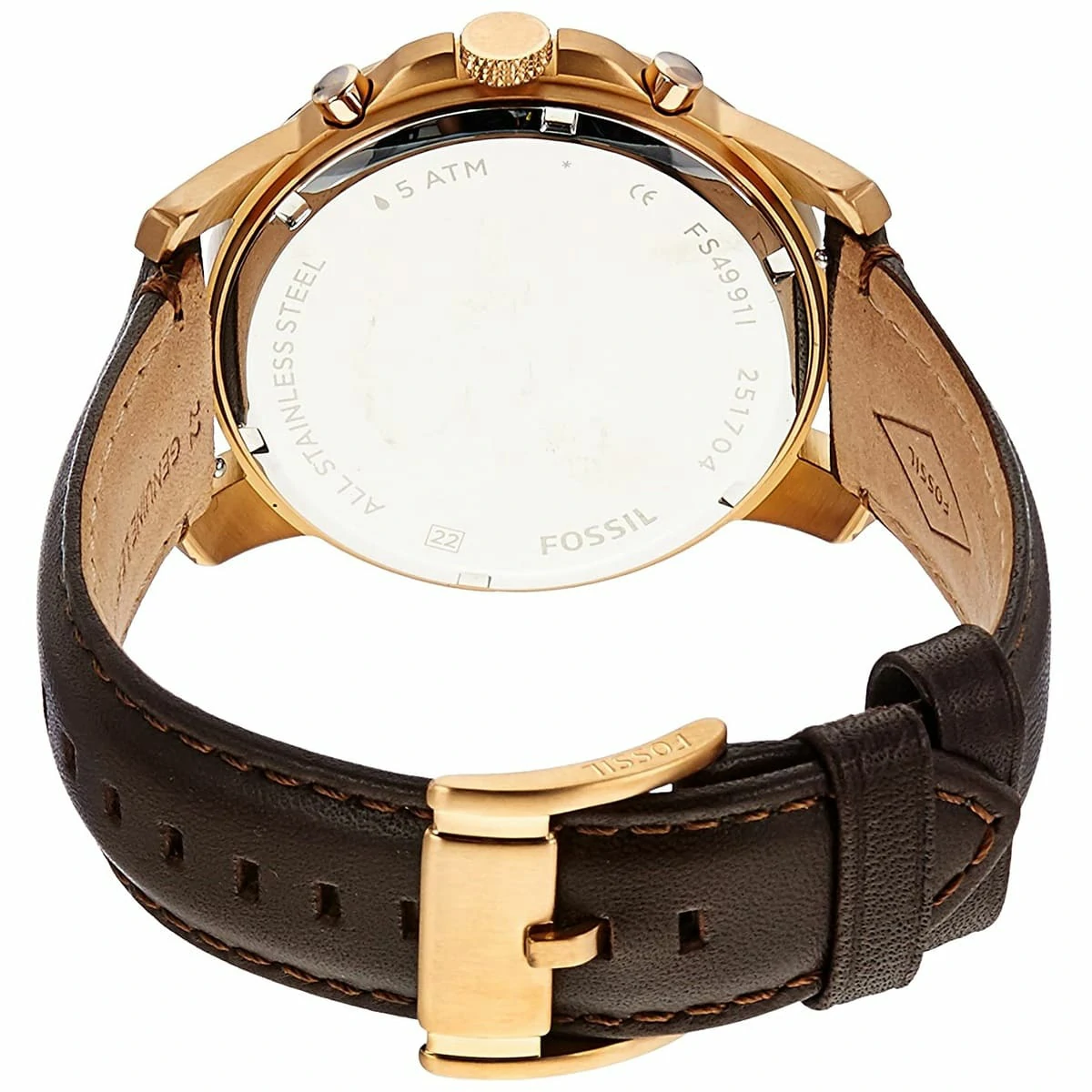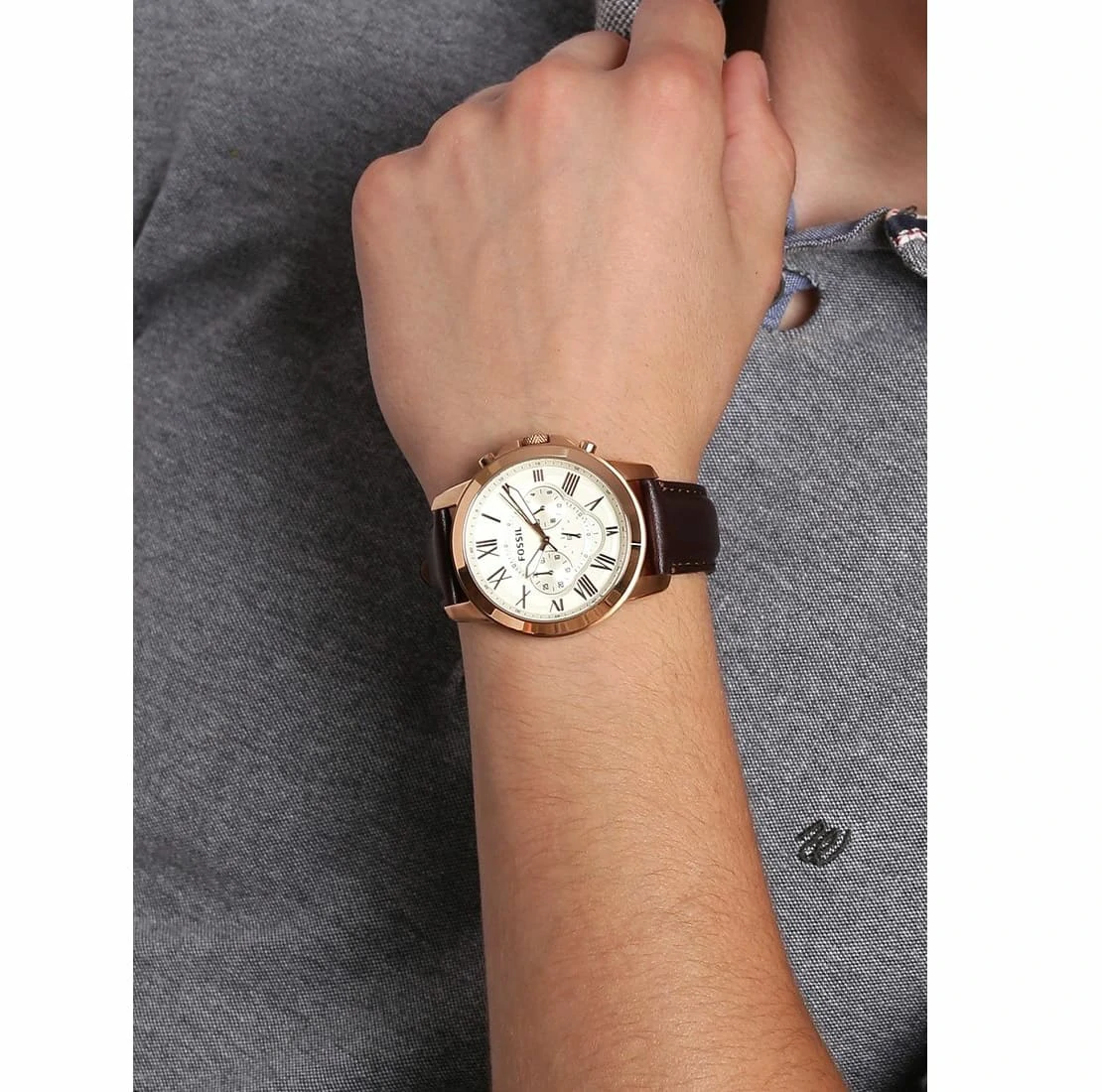 ساعة فوسيل للرجال اصلية موديل Grant FS4991 لون ابيض واستيك جلد طبيعي لون بني.