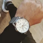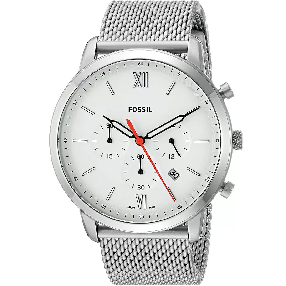 ساعة فوسيل اصليه للرجال موديل fs5382 بلون ابيض واوستيك معدن بلون فضي.