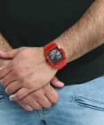 بلون اسود و استيك سيليكون مطاط بلون احمر شفاف