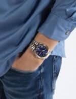 ساعة جيس Guess للرجال أصلية موديل GW0265G12 لون ازرق و استيك معدن ستانلس لون فضي * روز جولد.