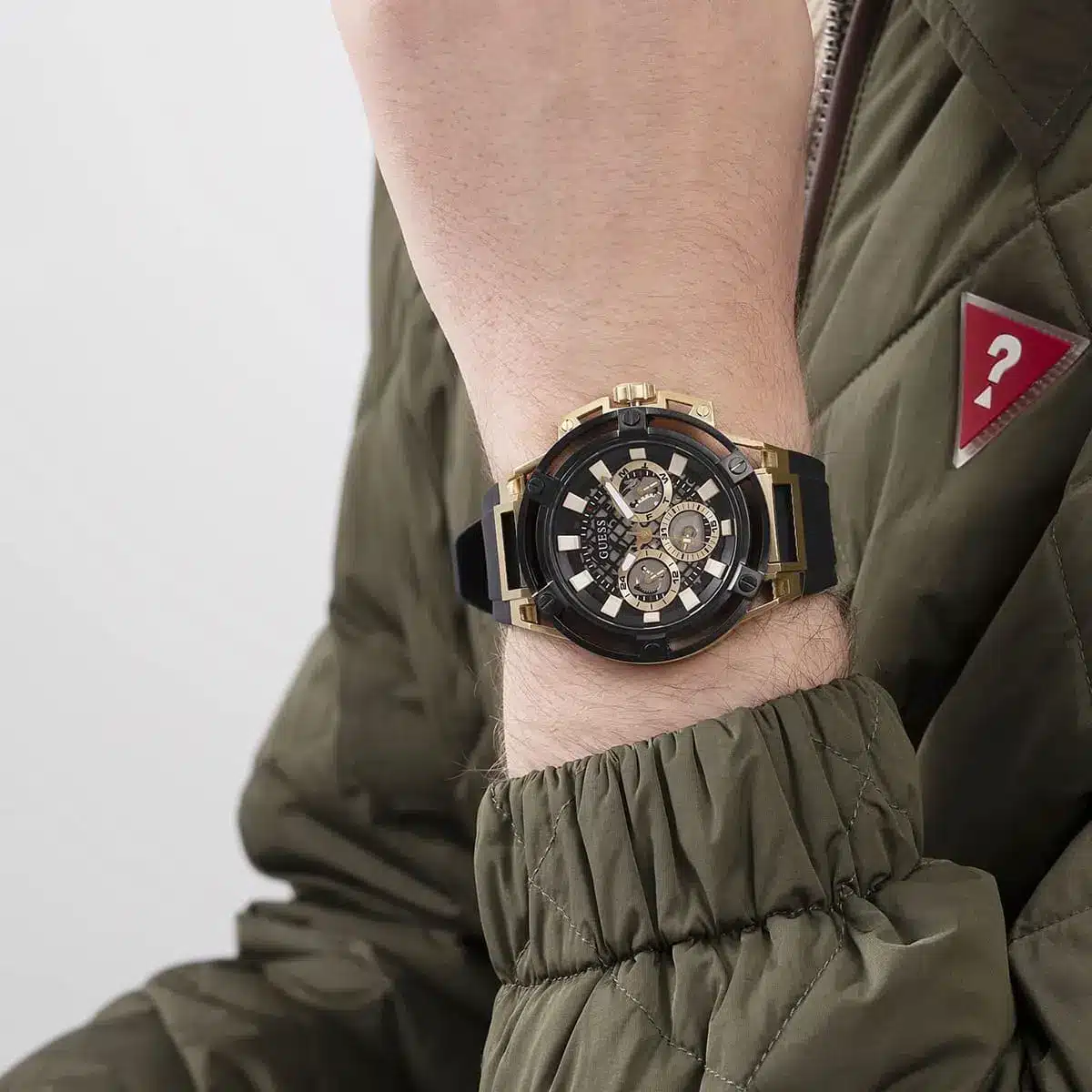 ساعة جيس Guess للرجال أصلية موديل Matrix GW0423G2 لون اسود و استيك سيليكون مطاط لون اسود.