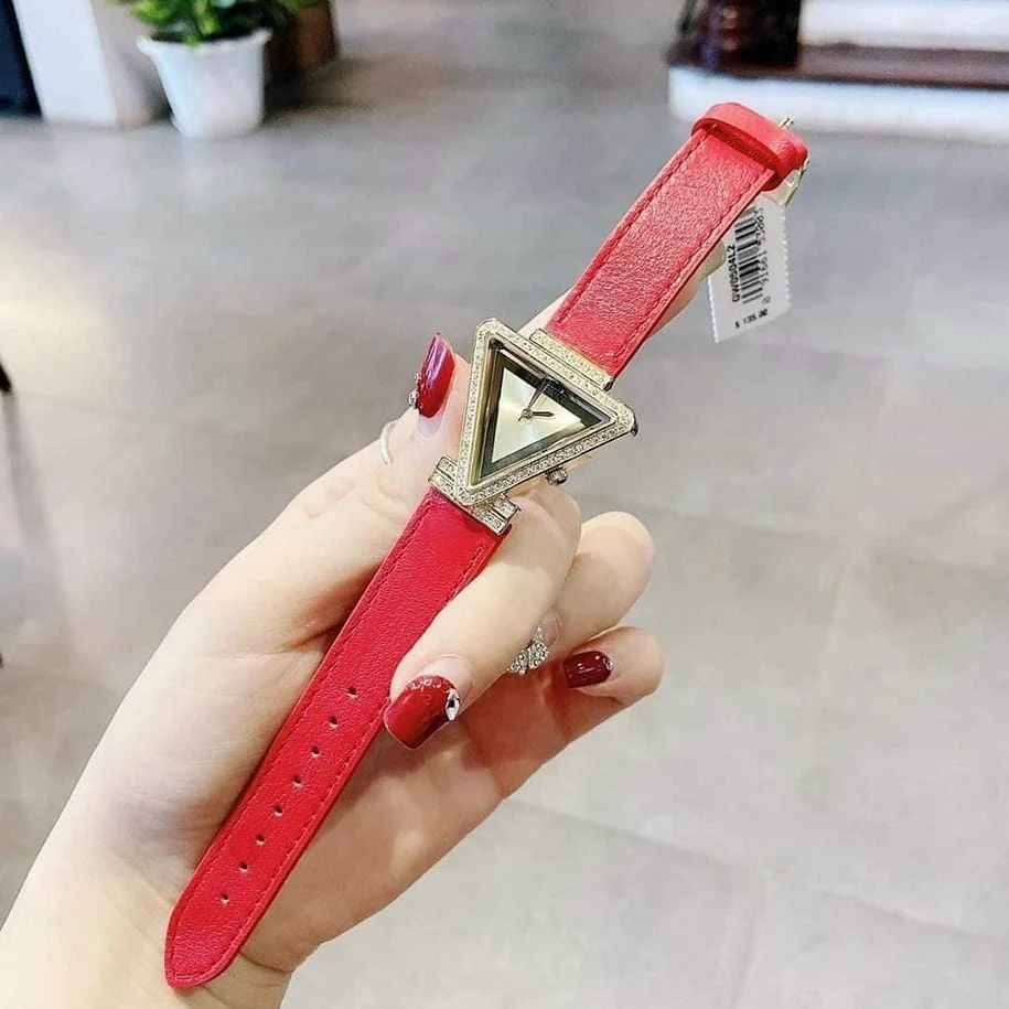 ساعة جيس Guess للنساء أصلية موديل Fame GW0504L2 لون ذهبي و استيك جلد طبيعي لون احمر.