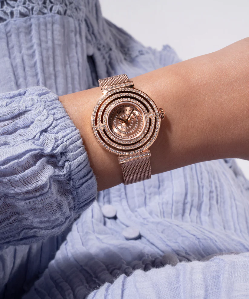 ساعة جيس Guess للنساء أصلية موديل GW0550L3 لون روز جولد و استيك معدن ستانلس لون روز جولد.