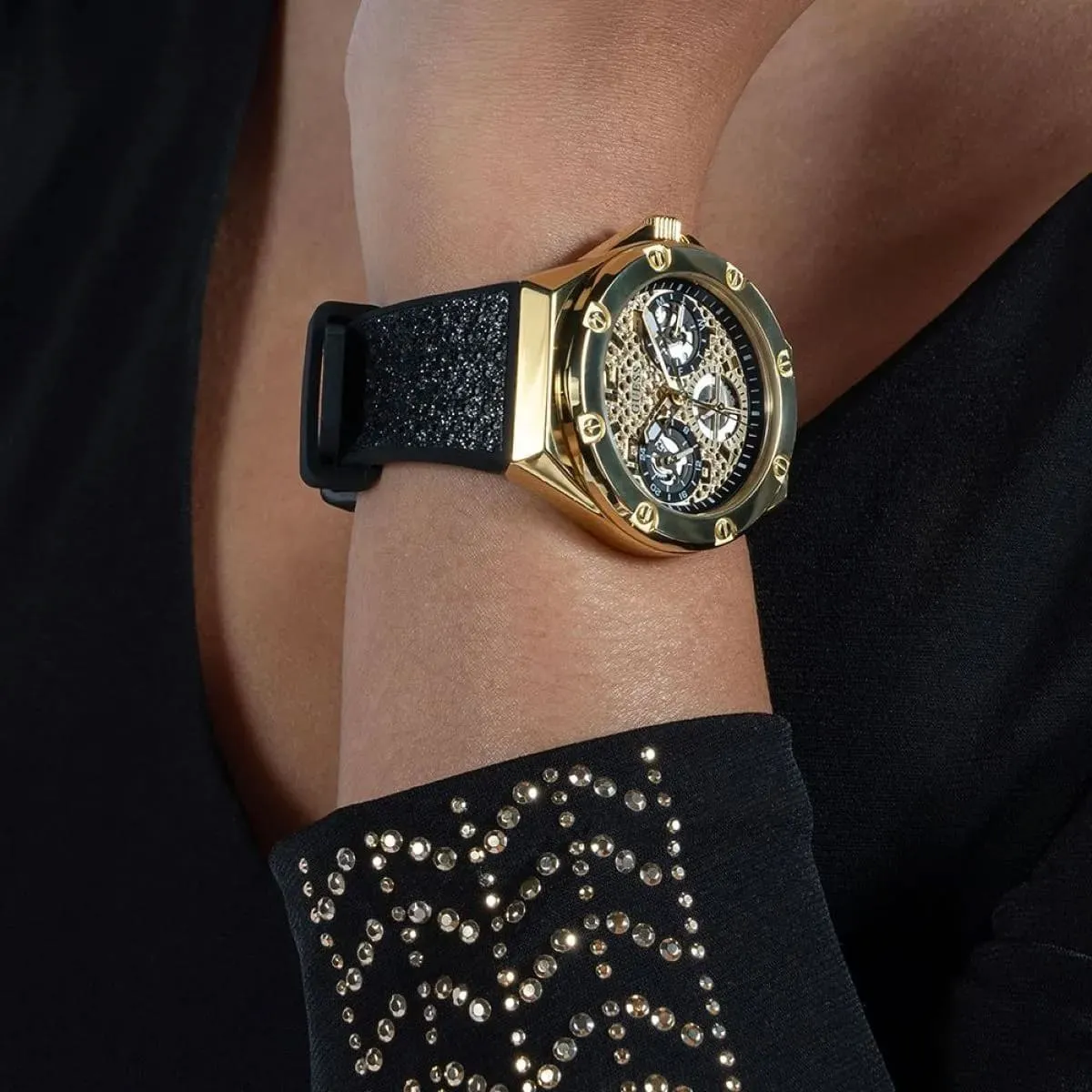 ساعة جيس للنساء أصلية موديل GW0620L2 لون ذهبي واستيك سيليكون مطاط لون اسود.