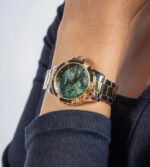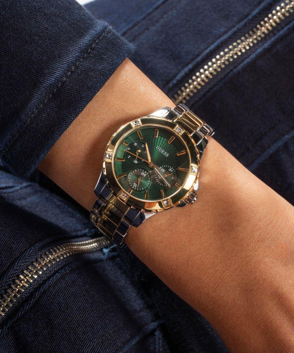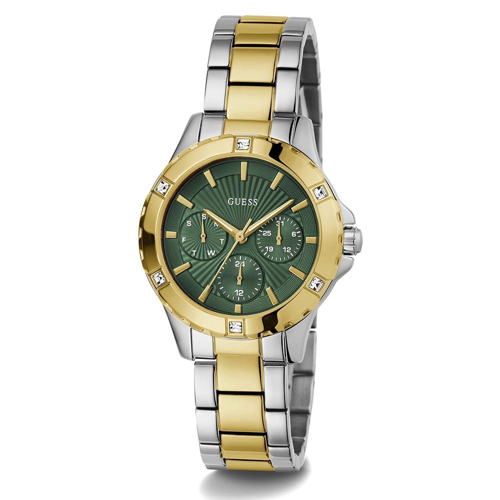 ساعة جيس Guess للنساء أصلية موديل GW0723L1 لون اخضر و استيك معدن لون فضي * ذهبي.