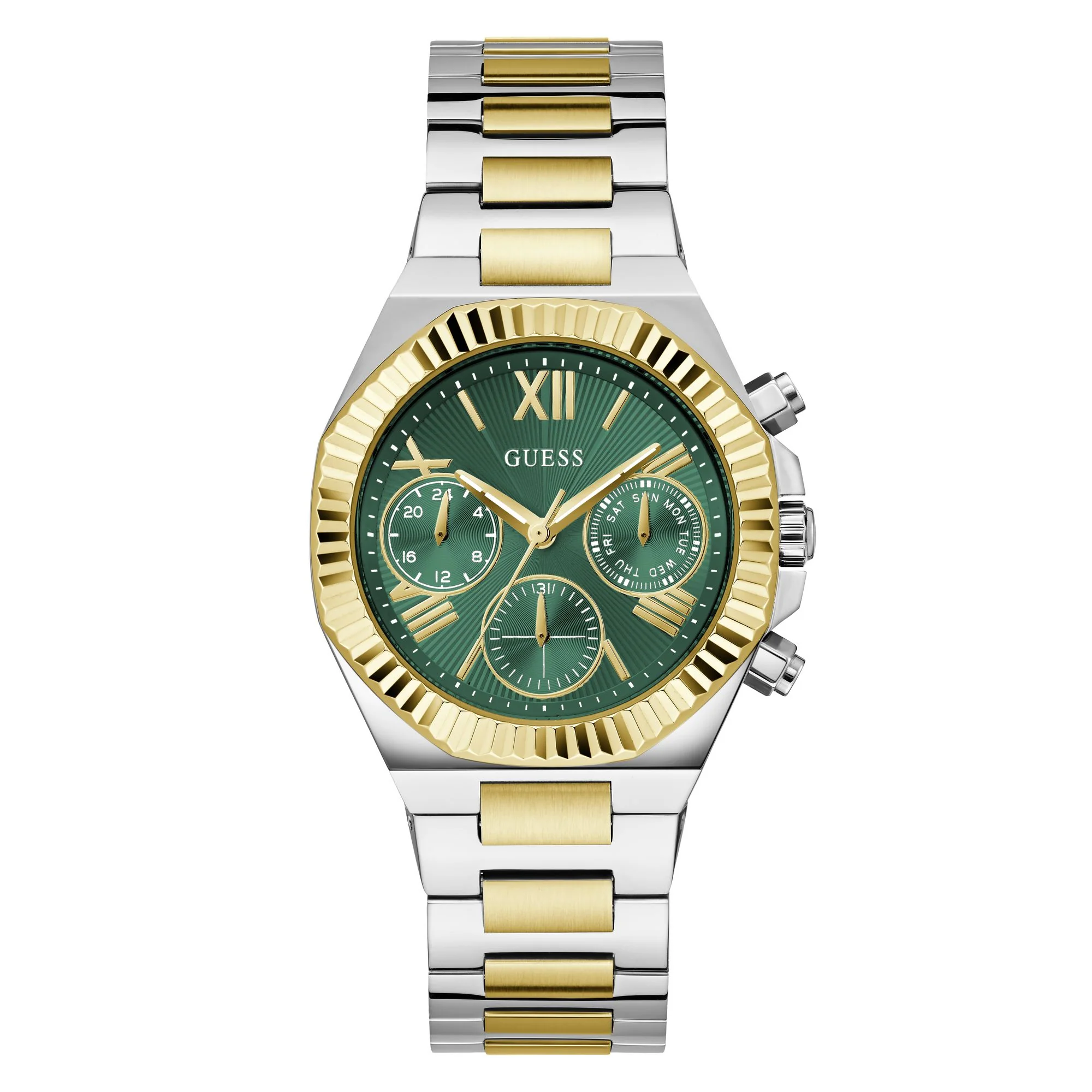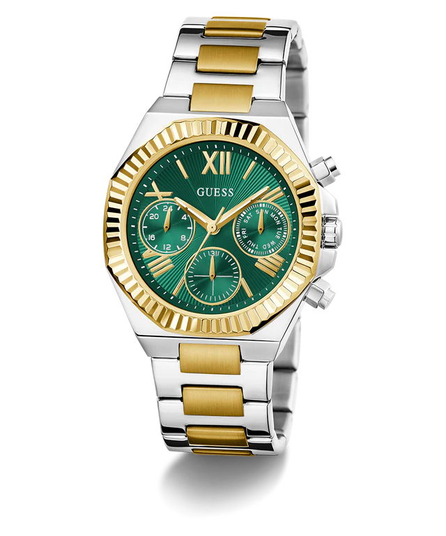 ساعة جيس Guess للنساء أصلية موديل GW0769L4 لون أخضر و استيك معدن لون فضي * ذهبي.