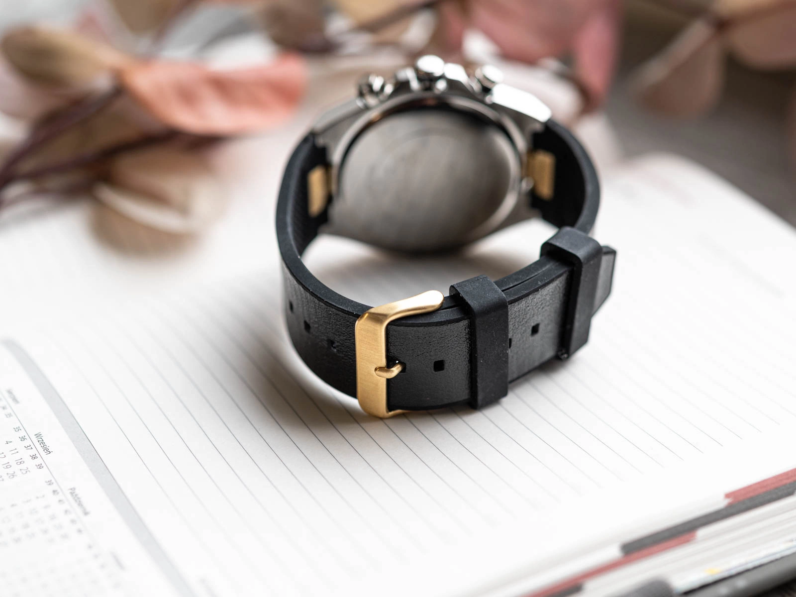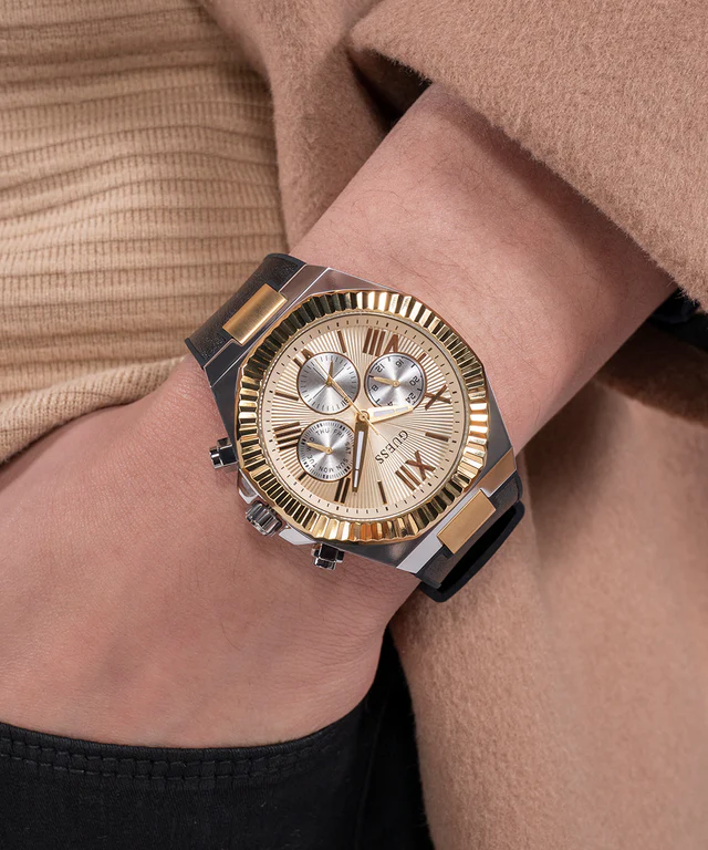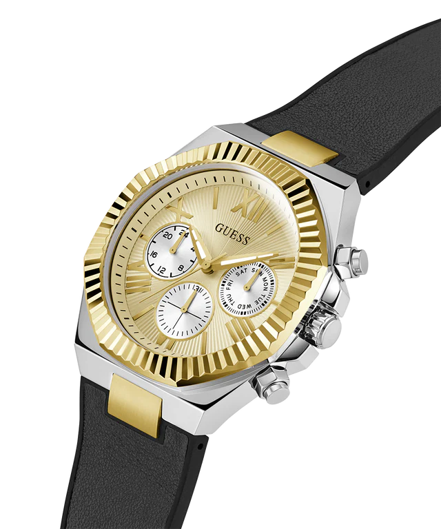 ساعة جيس Guess للرجال أصلية موديل GW0791G1 لون ذهبي و استيك سيليكون مطاط لون أسود.