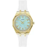 ساعة جيس Guess للنساء أصلية موديل GW0872L1 لون فيروزي و استيك سيليكون مطاط لون ابيض.