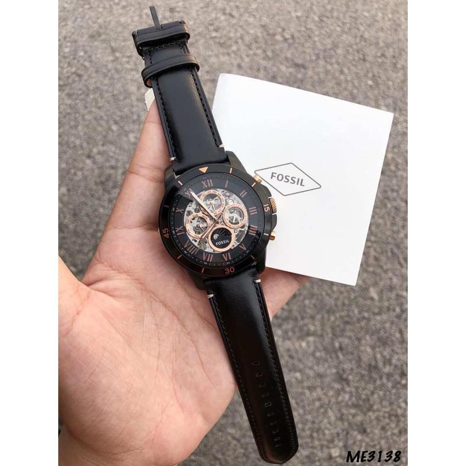 ساعة فوسيل للرجال اصلية موديل Grant Sport ME3138 لون اسود واستيك جلد طبيعي لون اسود.