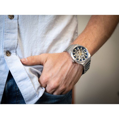 ساعة فوسيل للرجال أصلية ME3220 لون ازرق و اوستيك معدن ستانلس لون فضي.