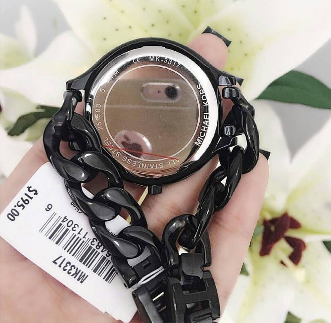 ساعة مايكل كورس للنساء أصلية موديل MK3317 لون اسود و استيك معدن ستانلس لون اسود.
