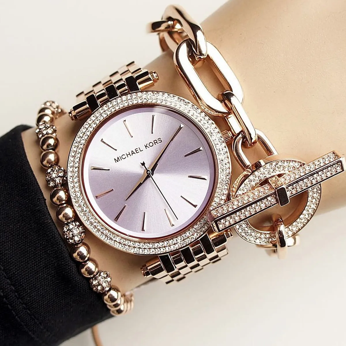ساعة مايكل كورس Michael Kors للنساء أصلية موديل MK3400 Darci لون أرجواني و استيك معدن ستانلس لون روز جولد.
