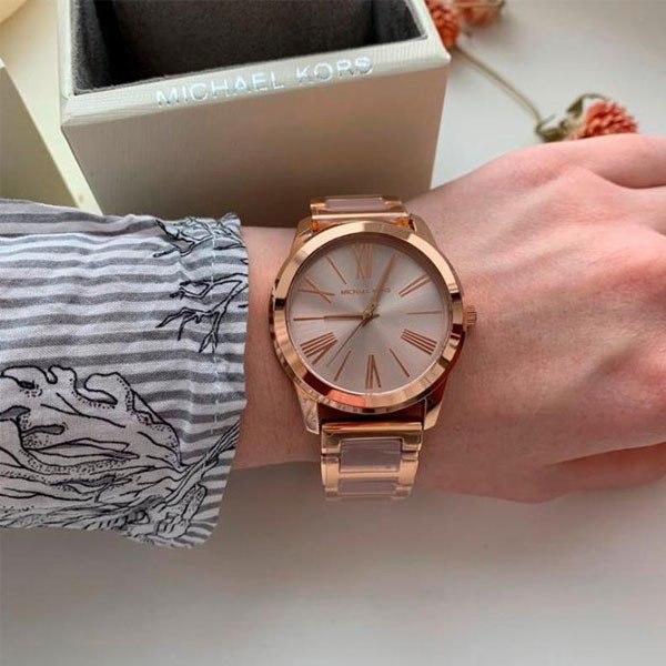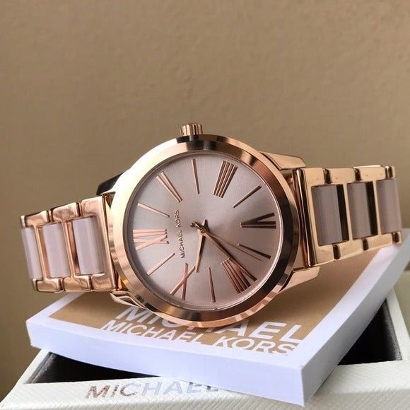 ساعة مايكل كورس للنساء أصلية موديل MK3595 لون روز جولد و استيك معدن ستانلس لون روز جولد.