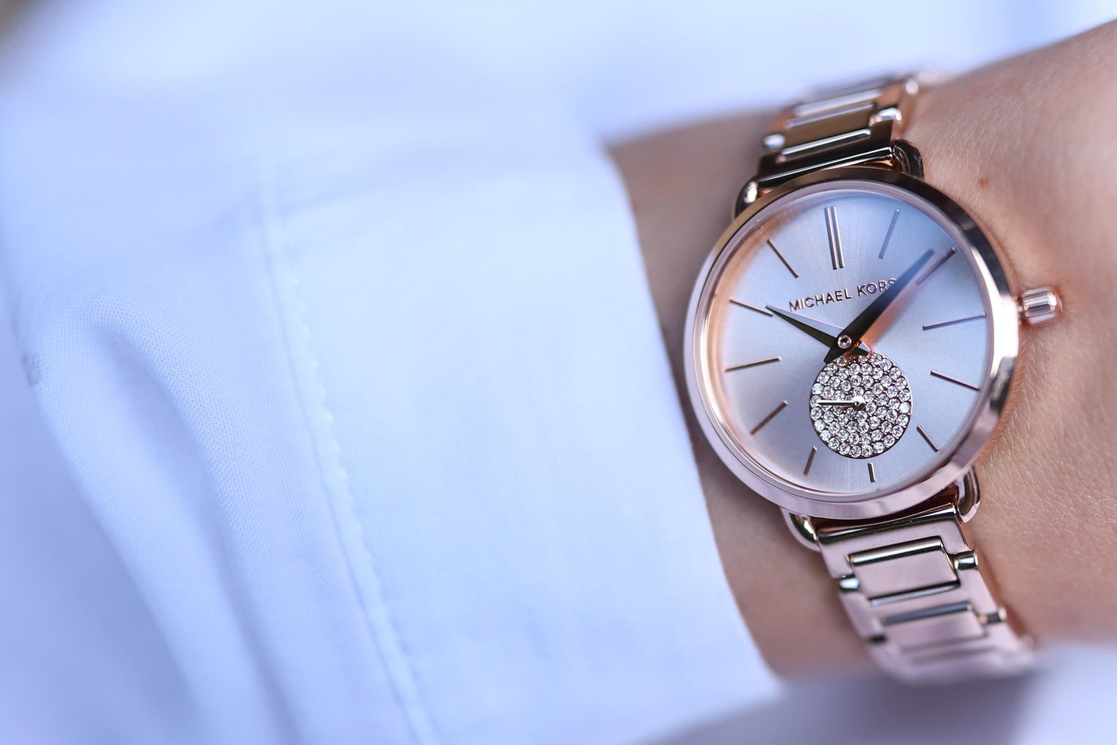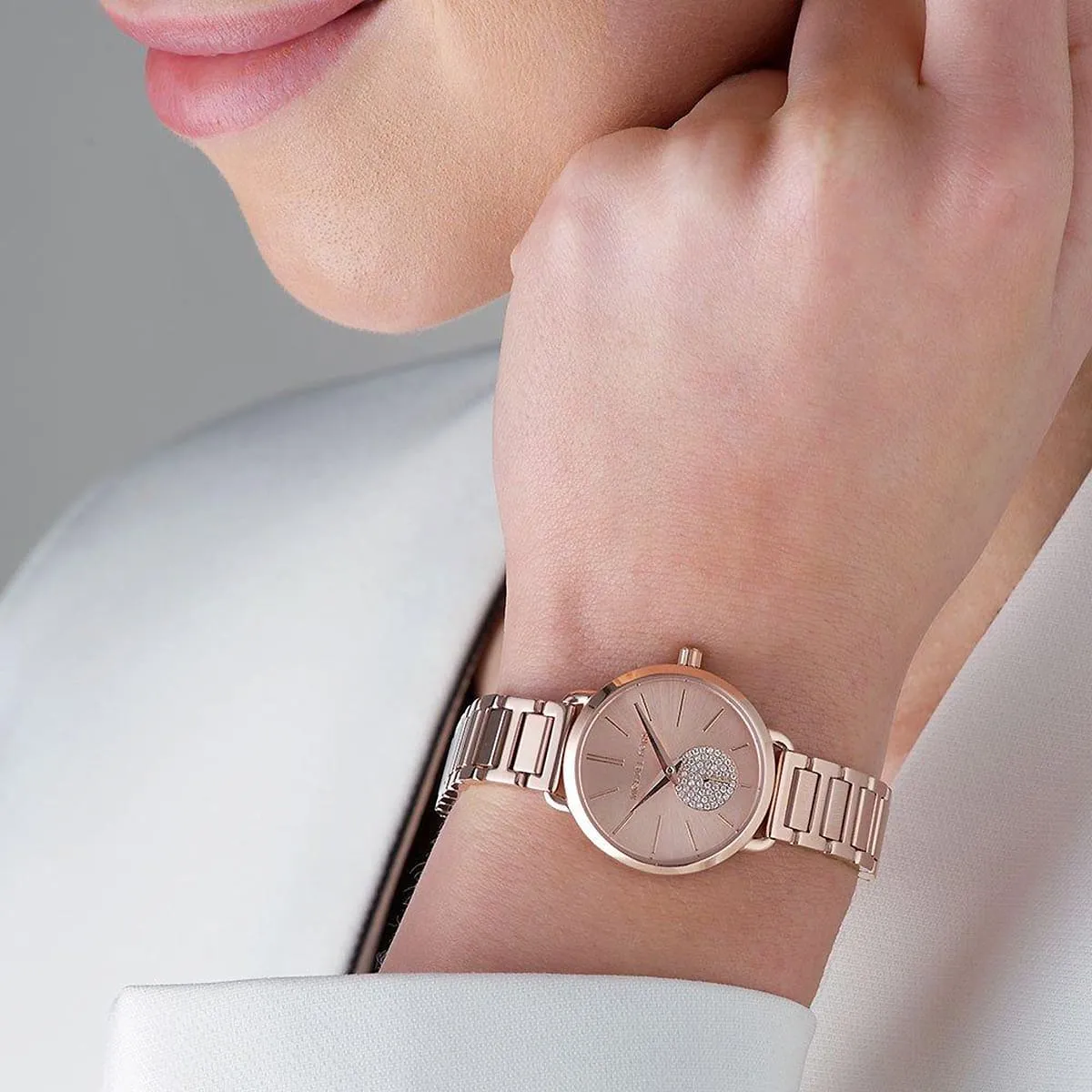 ساعة مايكل كورس Michael Kors للنساء أصلية موديل Portia MK3839 لون روز جولد و استيك معدن ستانلس لون روز جولد.