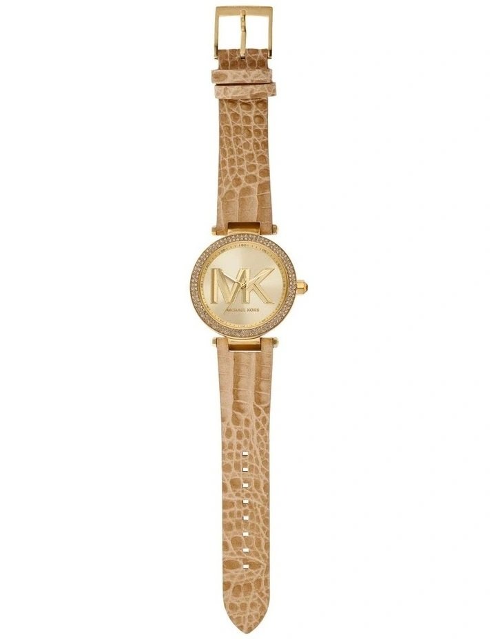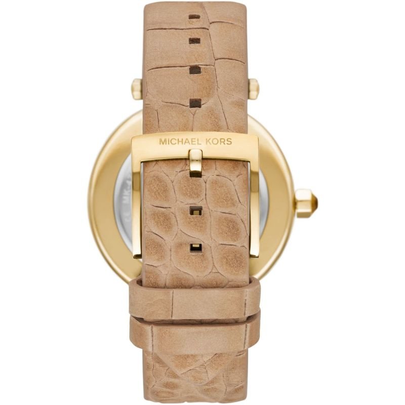 ساعة مايكل كورس للنساء أصلية موديل MK4725 لون ذهبي و استيك جلد طبيعي لون هاڤان.