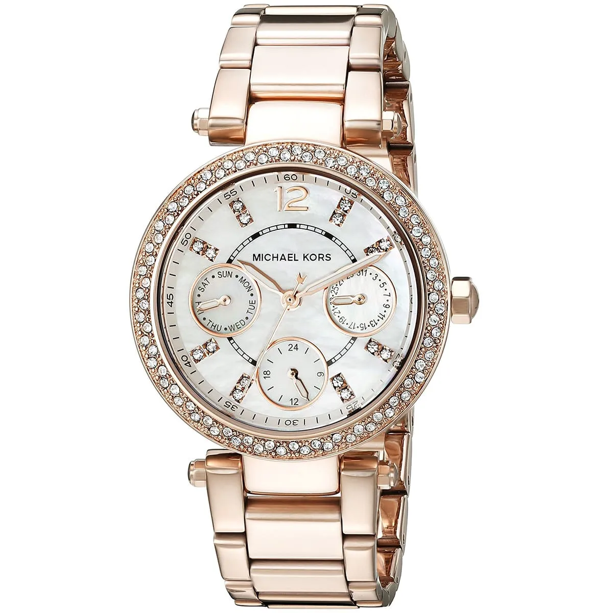 ساعة مايكل كورس Michael Kors للنساء أصلية موديل MK5616 Parker لون ابيض و استيك معدن ستانلس لون روز جولد.