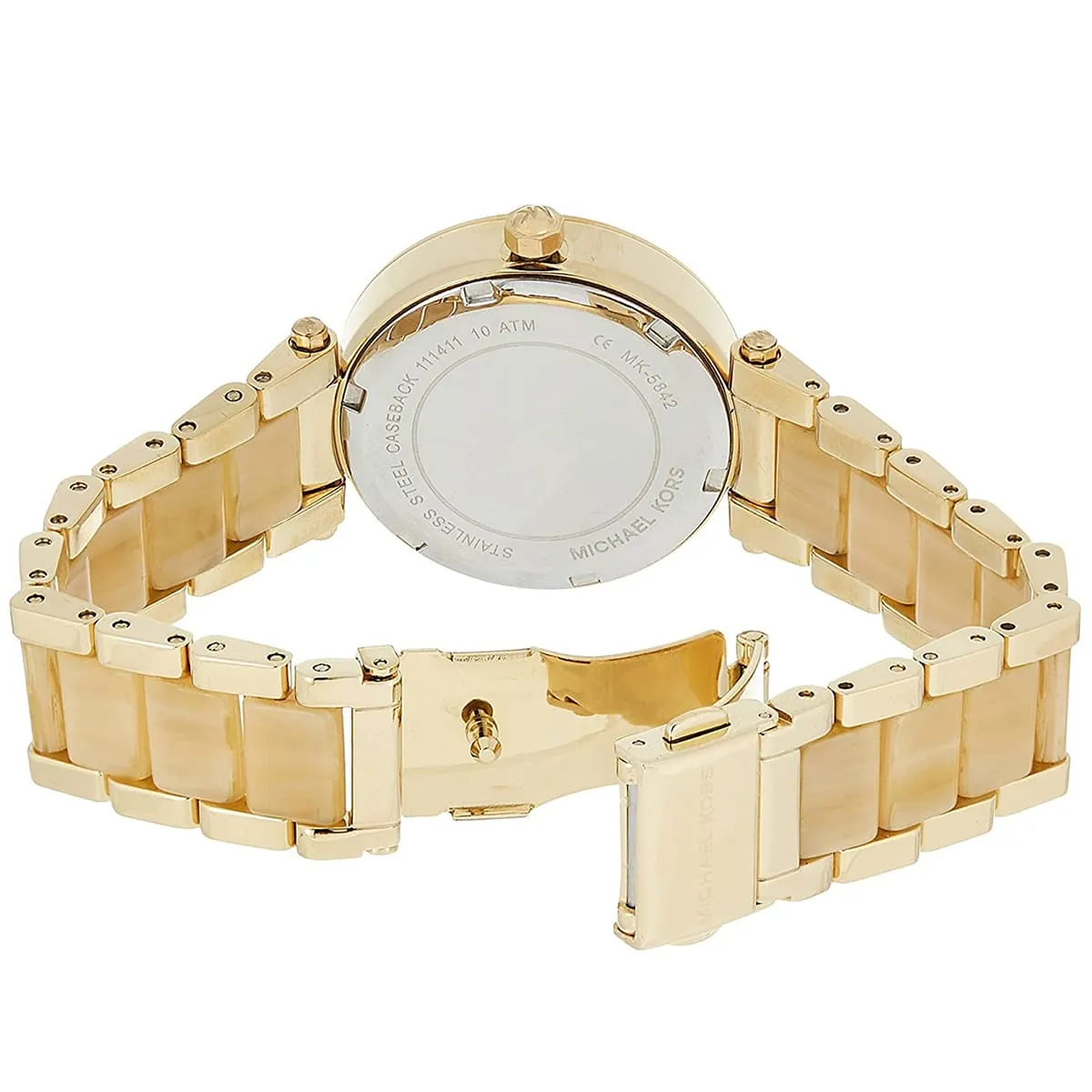 ساعة مايكل كورس Michael Kors للنساء أصلية موديل MK5842 Parker لون ذهبي و استيك متعدد الخامات لون ذهبي.