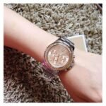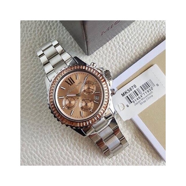ساعة مايكل كورس للنساء اصلية موديل Gunmetal MK5870 بلون روز جولد واستيك معدن بلون فضي.