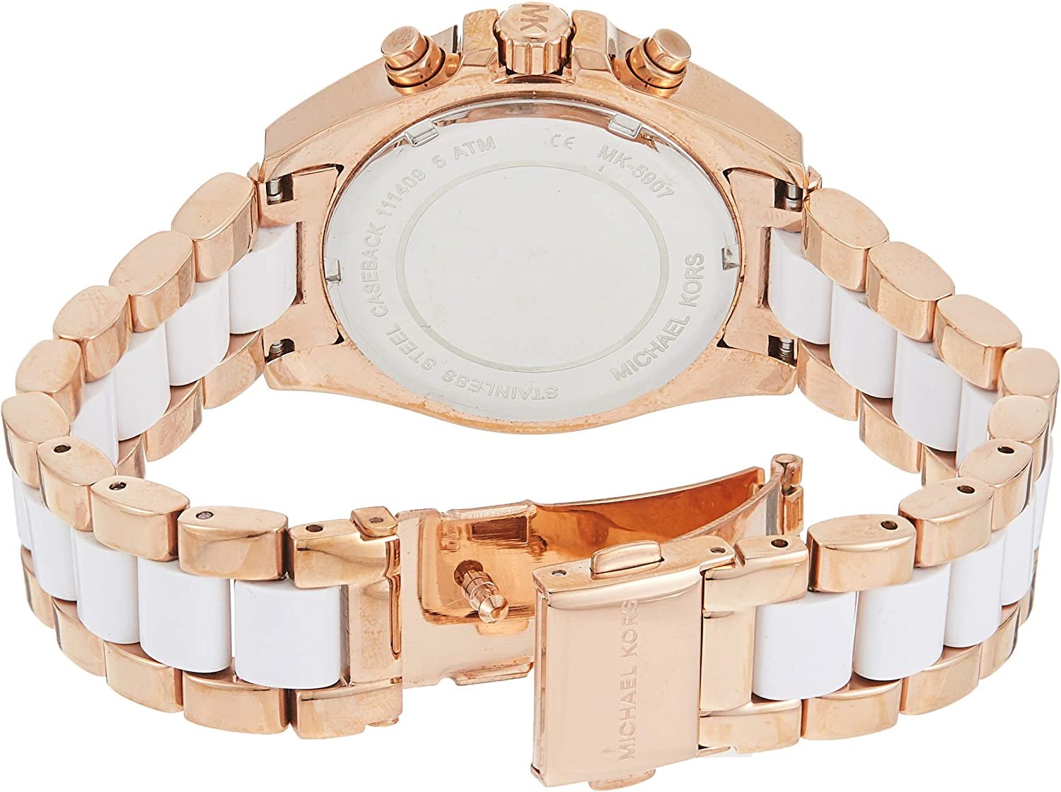 ساعة مايكل كورس للنساء اصلية موديل Bradshaw MK5907 بلون ابيض واستيك معدن بلون ابيض * روز جولد.