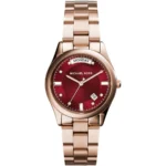 ساعة مايكل كورس Michael Kors للنساء أصلية موديل Colette MK6103 لون احمر و استيك معدن لون روز جولد.