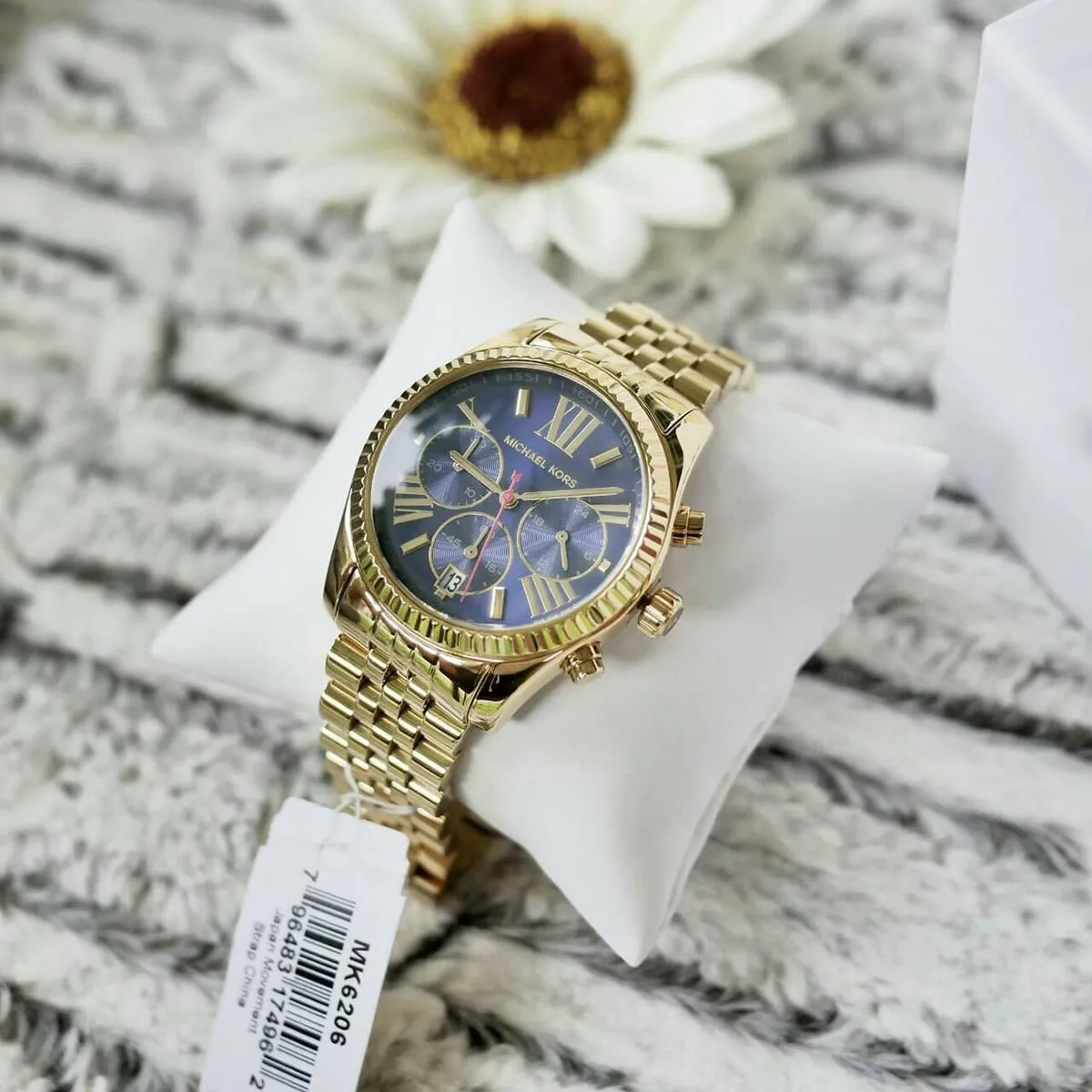 ساعة مايكل كورس Michael Kors للنساء أصلية موديل MK6206 Lexington لون ازرق و استيك معدن ستانلس لون ذهبي.