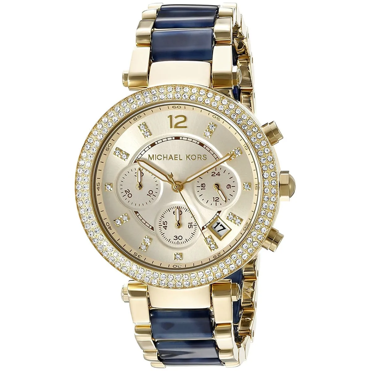 ساعة مايكل كورس Michael Kors للنساء أصلية موديل MK6238 Parker لون ذهبي و استيك متعدد الخامات لون ازرق * ذهبي.