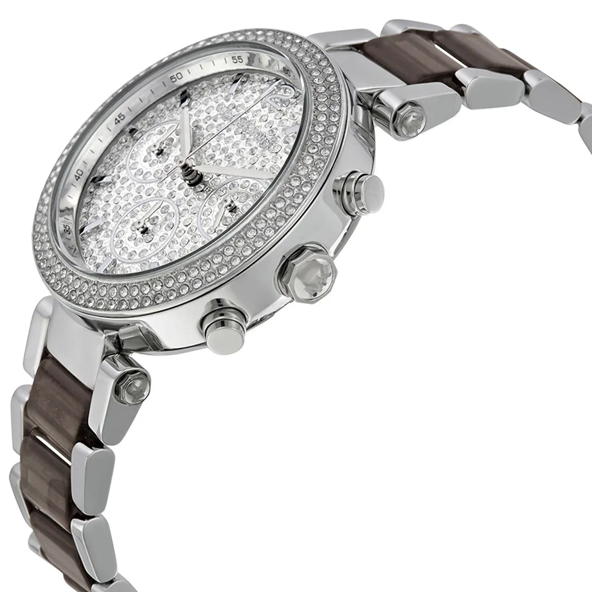 ساعة مايكل كورس Michael Kors للنساء أصلية موديل MK6284 Parker لون فضي و استيك متعدد الخامات لون فضي * بني.
