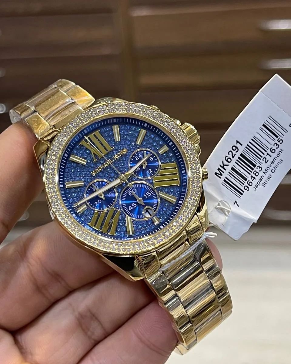 ساعة مايكل كورس Michael Kors للنساء أصلية موديل Wren MK6291 لون ازرق و استيك معدن ستانلس لون ذهبي.