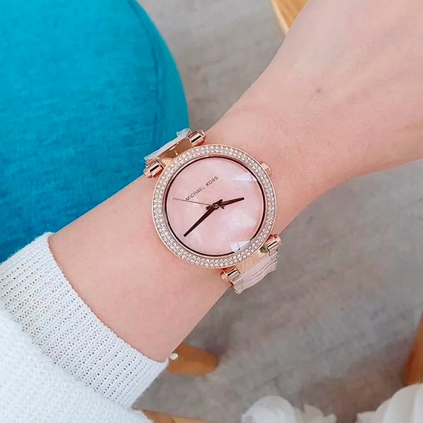ساعة مايكل كورس للنساء أصلية موديل MK6402 لون روز جولد و اوستيك معدن ستانلس لون ابيض * روز جولد.