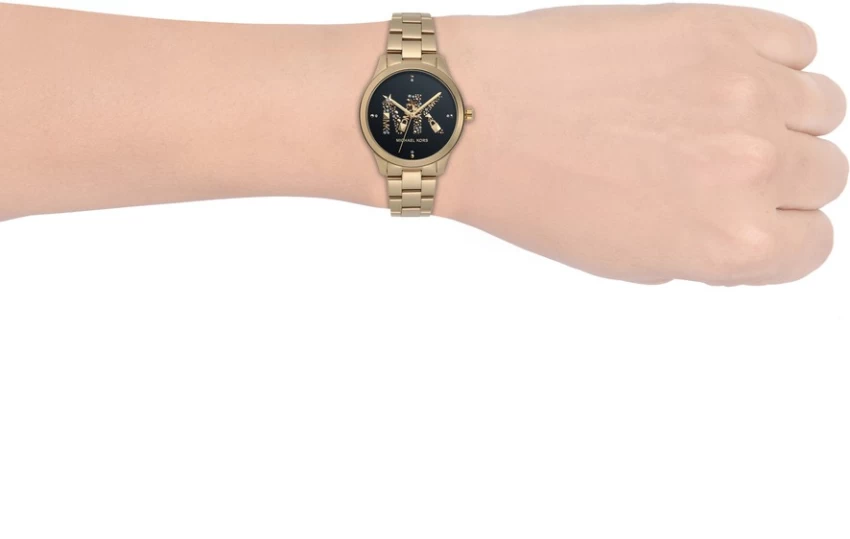 ساعة مايكل كورس للنساء أصلية موديل MK6682 لون اسود و استيك معدن ستانلس لون ذهبي.