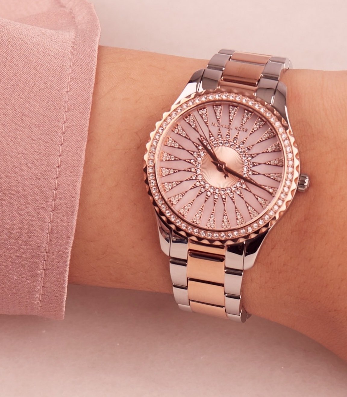 ساعة مايكل كورس للنساء أصلية موديل MK6894 لون وردي * روز جولد و استيك معدن ستانلس لون فضي * روز جولد.