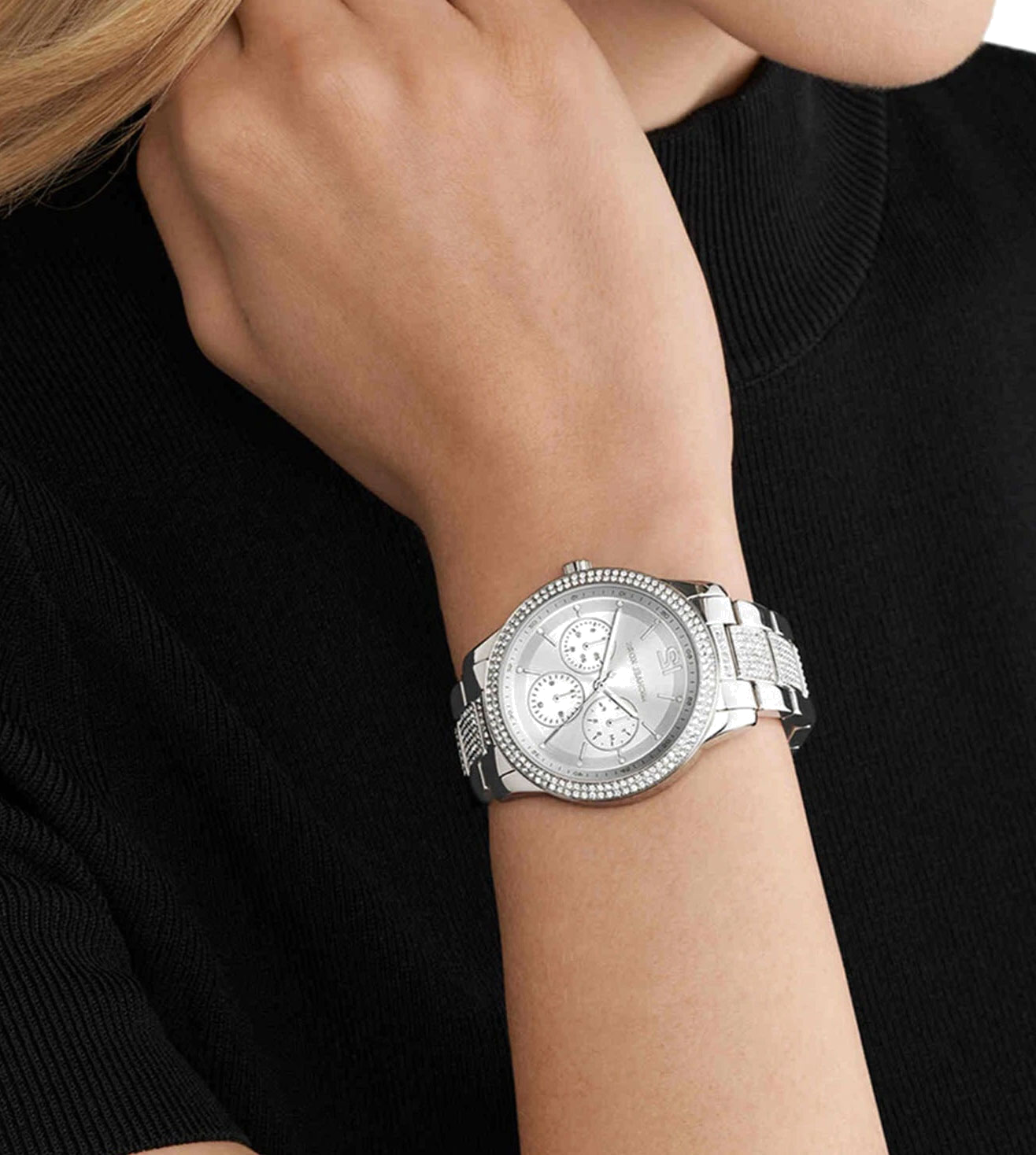 ساعة مايكل كورس للنساء أصلية موديل MK7294 لون فضي و استيك معدن ستانلس لون فضي.