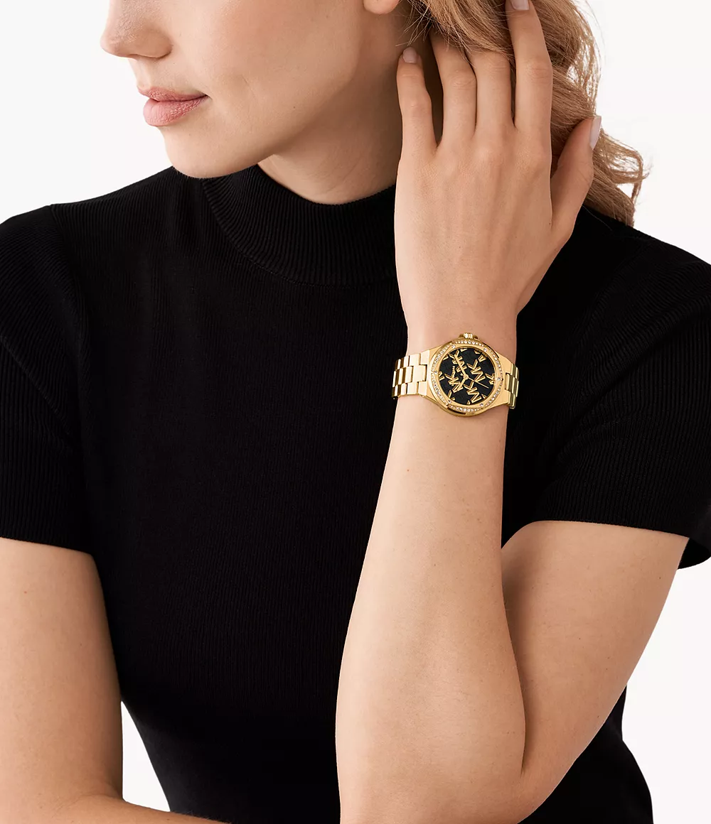 ساعة مايكل كورس اصلية للنساء موديل MK7404 لون اسود واوستيك معدن ستانلس لون ذهبي.