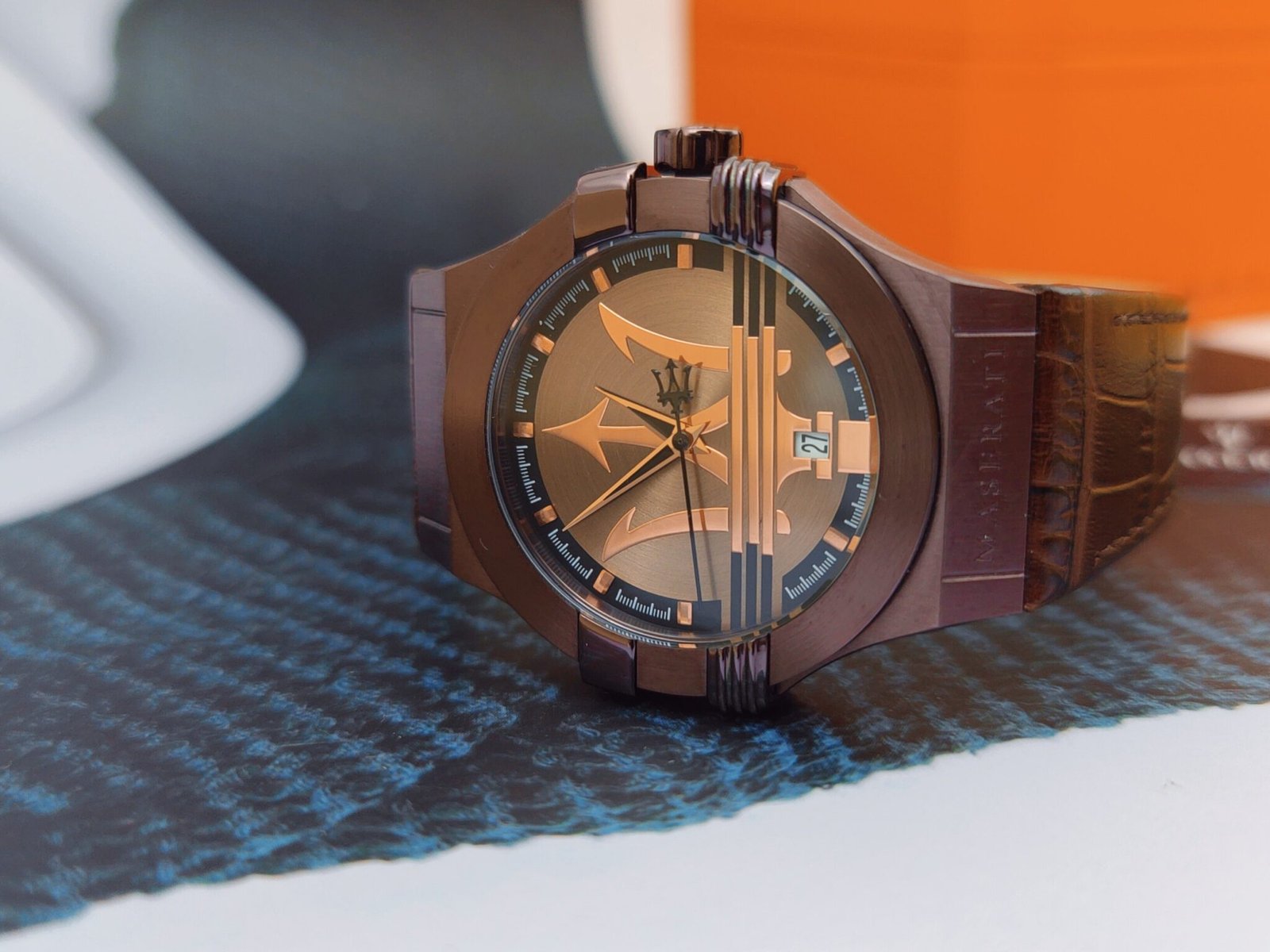 ساعة مازيراتي للرجال أصلية موديل Potenza R8851108011 لون بني و استيك جلد طبيعي لون بني.