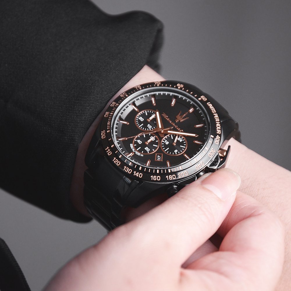 ساعة مازيراتي للرجال أصلية موديل R8873612048 لون اسود و استيك معدن ستانلس لون اسود.