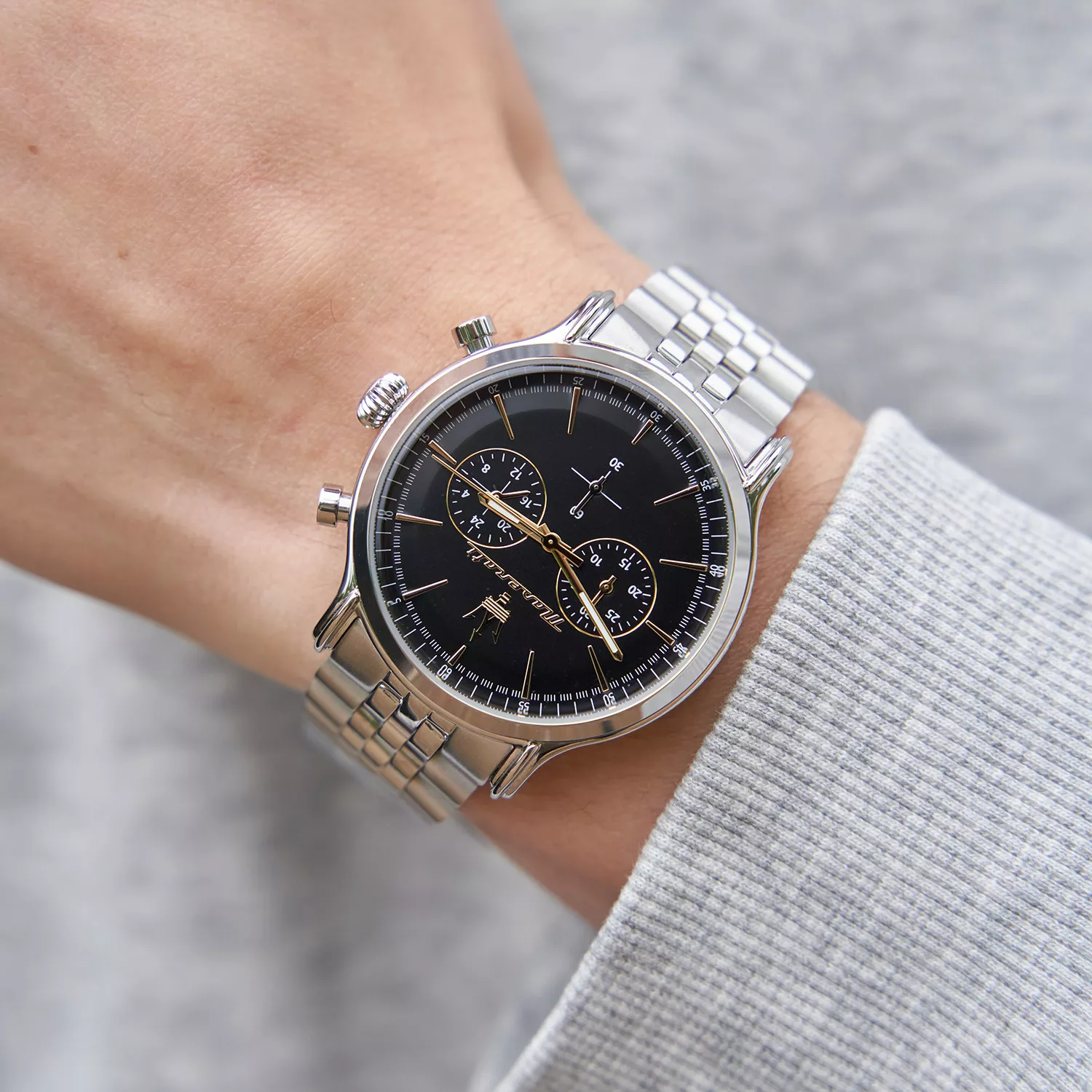 ساعة مازيراتي للرجال أصلية موديل R8873618017 لون اسود و استيك معدن ستانلس لون فضي.