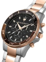 ساعة مازيراتي للرجال أصلية موديل R8873640010 بلون اسود و استيك معدن بلون فضي * روز جولد.