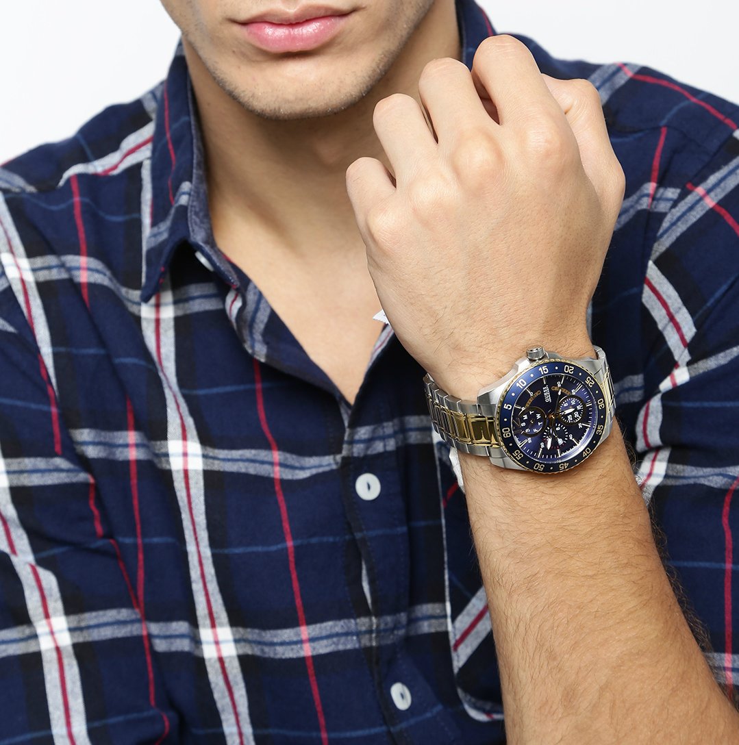ساعة جيس للرجال اصلية موديل Jet W0797G1 لون ازرق واستيك معدن ستانلس لون فضي * ذهبي.
