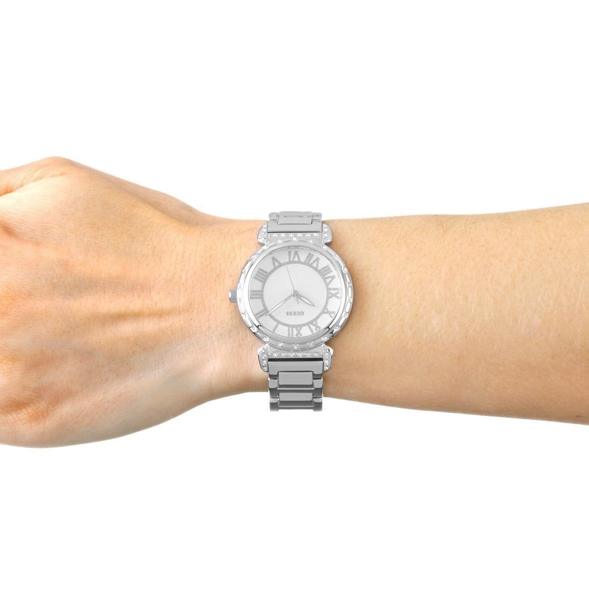 ساعة جيس للنساء اصلية موديل South Hampton W0831L1 لون ابيض واستيك معدن ستانلس لون فضي.