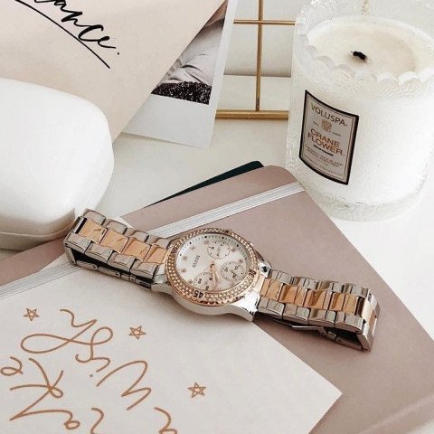 ساعة جيس للنساء اصلية موديل Confetti W0851L3 لون فضي واستيك معدن لون فضي * روز جولد.