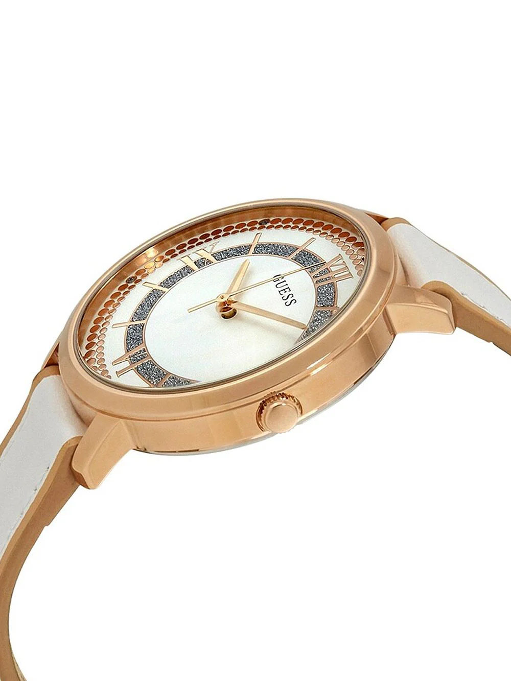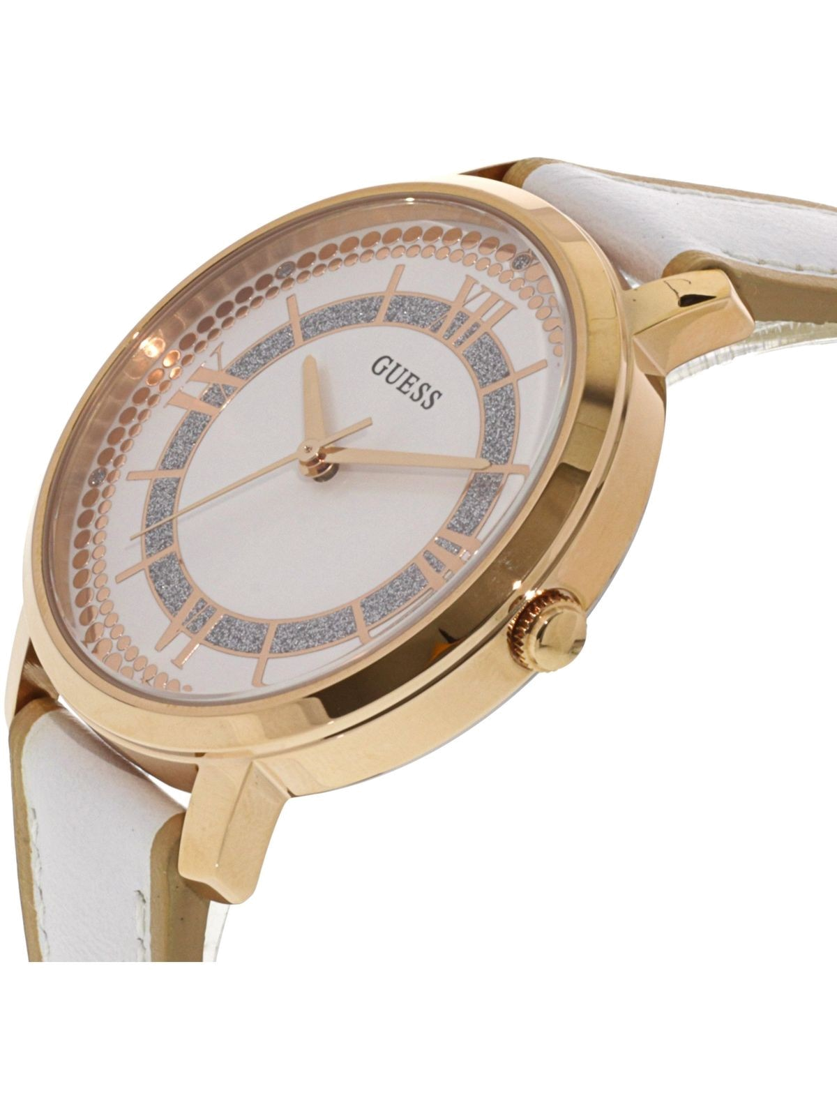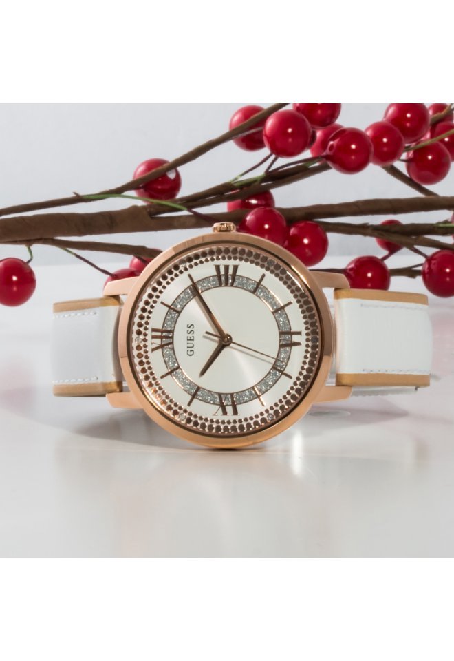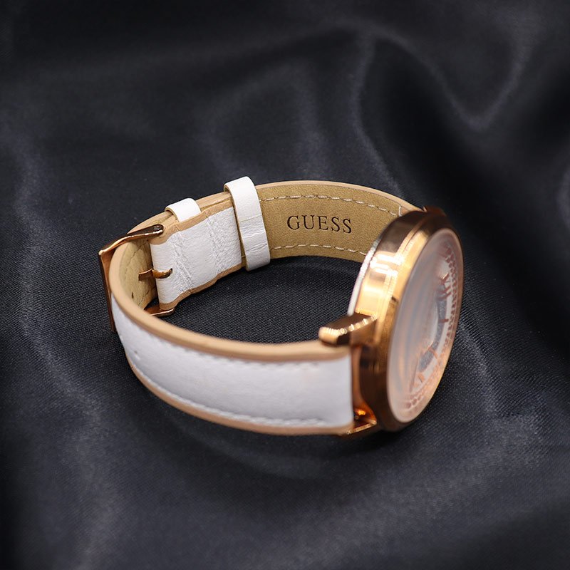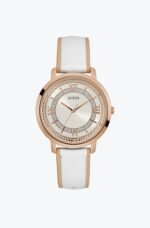 ساعة جيس Guess للنساء أصلية موديل W0934L1 لون ابيض و استيك جلد طبيعي لون ابيض.