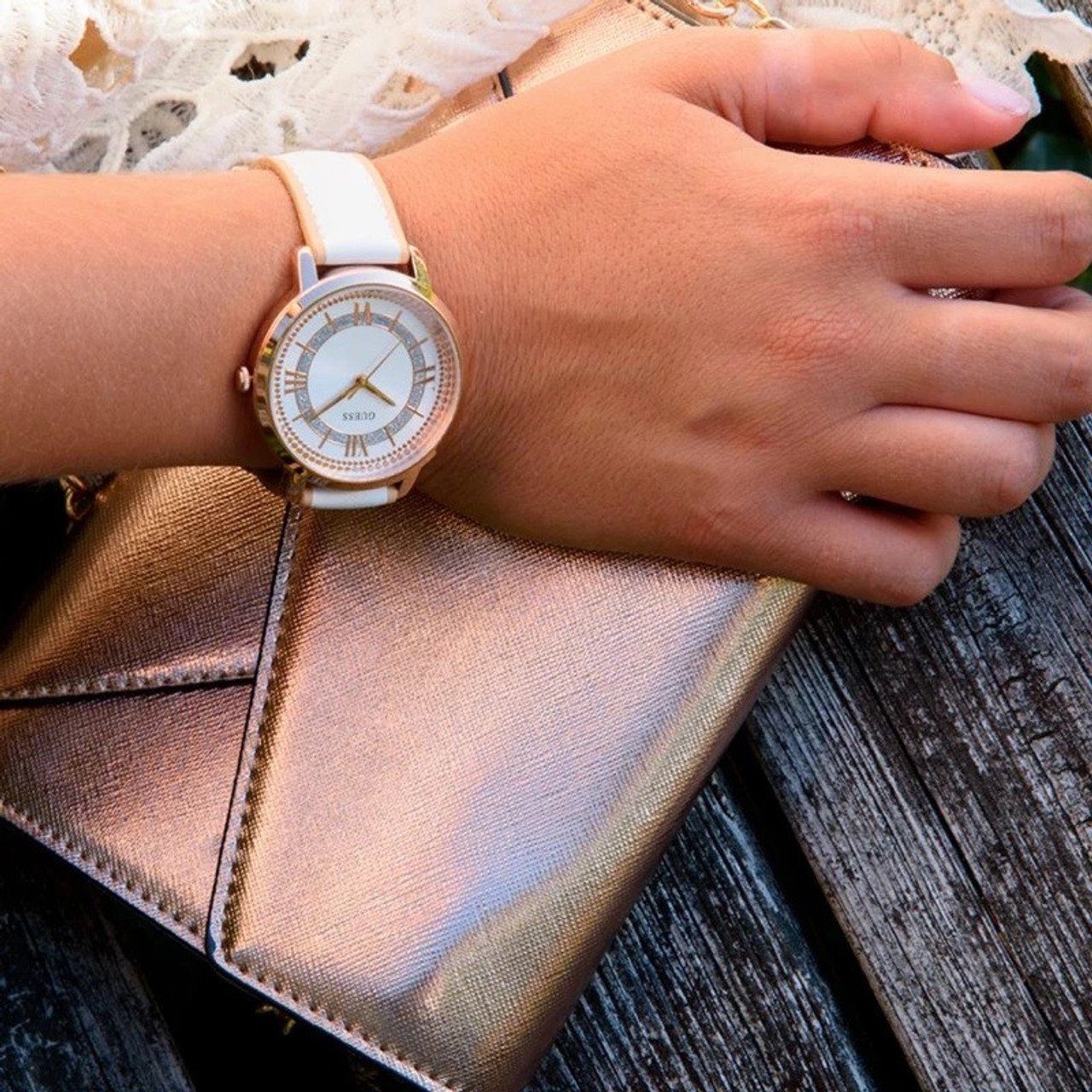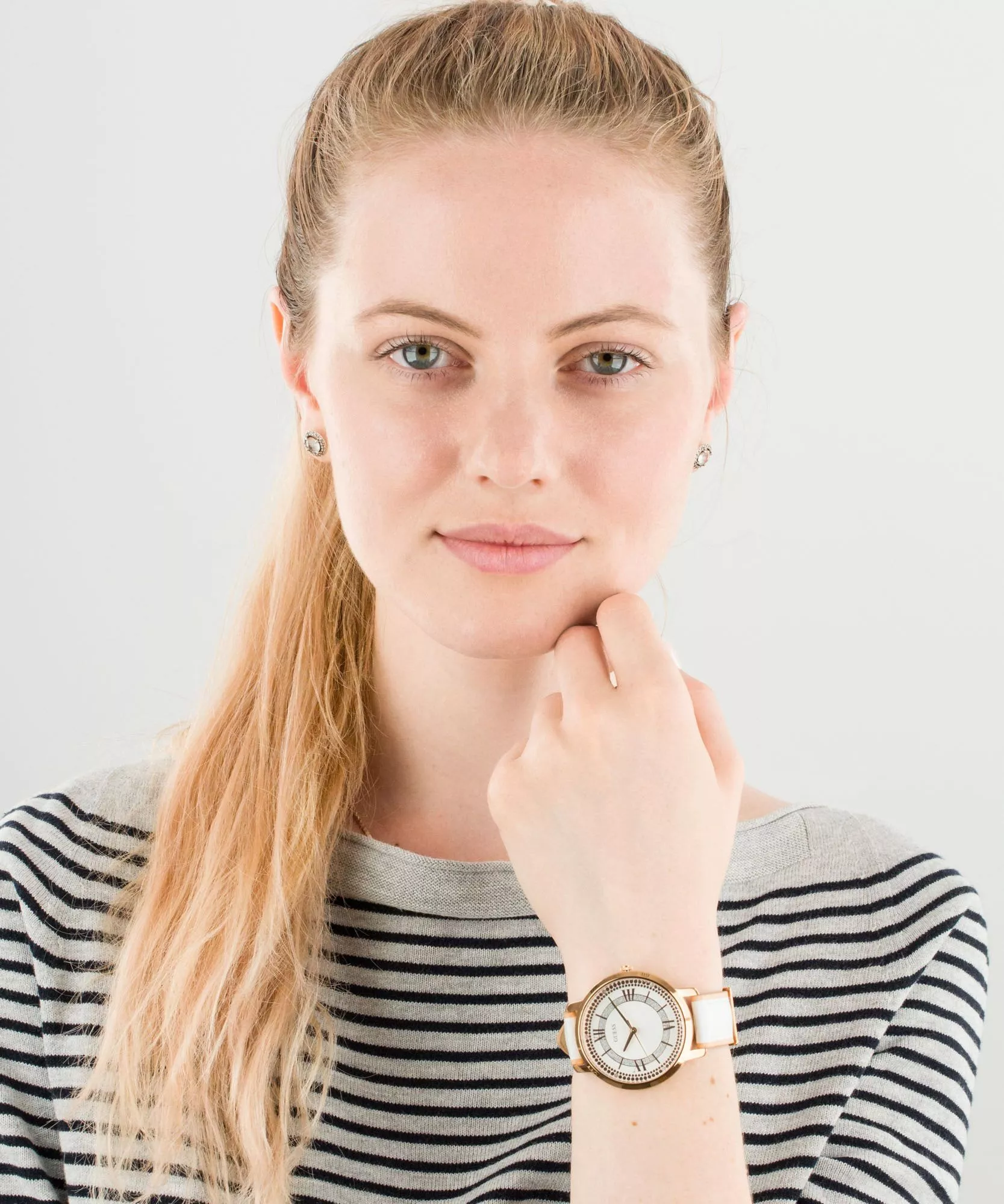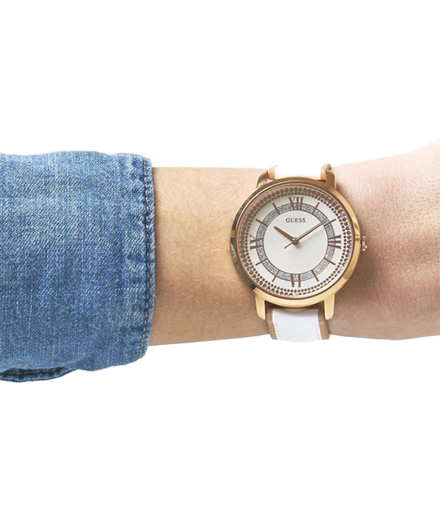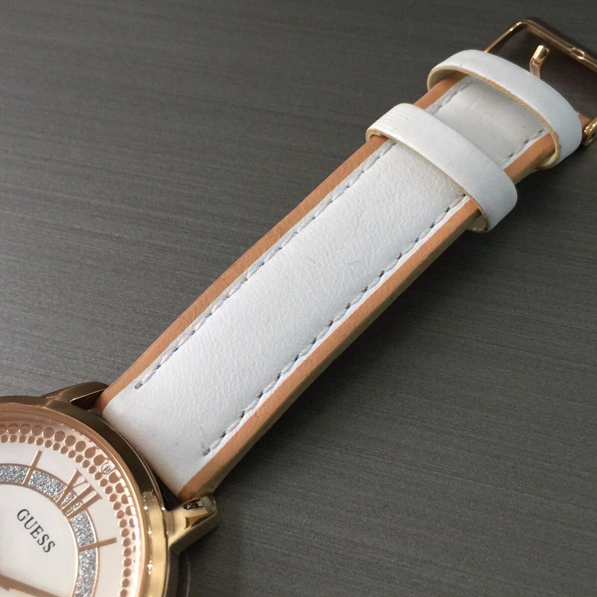 ساعة جيس Guess للنساء أصلية موديل W0934L1 لون ابيض و استيك جلد طبيعي لون ابيض.