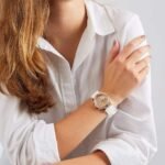 ساعة جيس للنساء اصلية موديل Confetti W1098L5 لون روز جولد واوستيك مطاط لون ابيض.